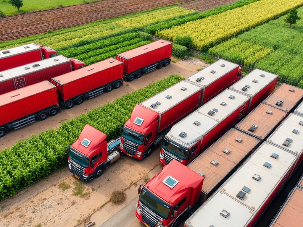 Veículos novos e bem equipados para o transporte seguro de grãos.